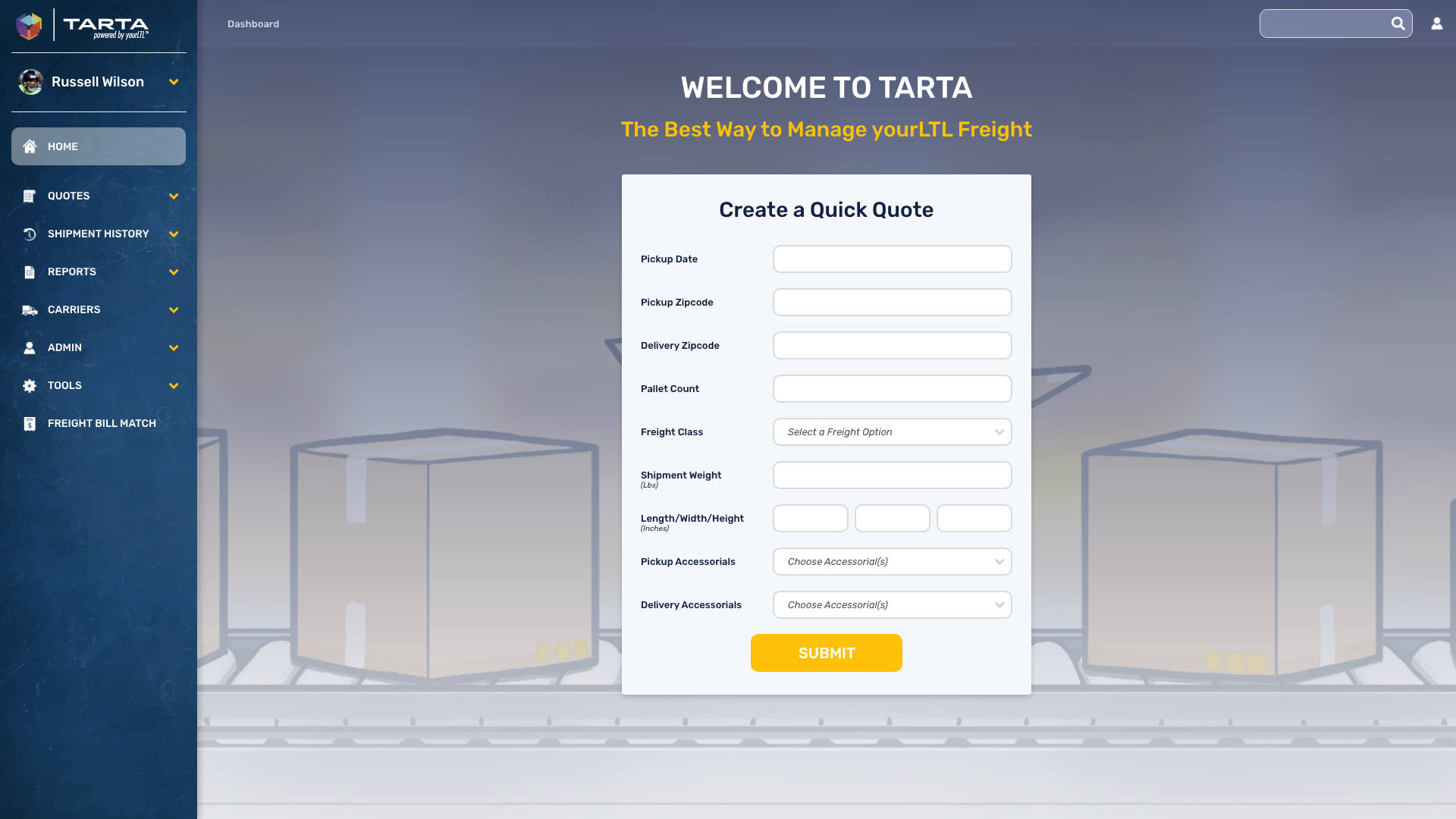 Tarta is a web dashboard used for managing shipping and logistics freight